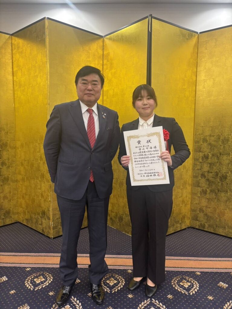 令和7年度 国土交通省と建設産業人材確保・育成推進協議会が主催する「私たちの主張」作文コンクールの表彰式が11月25日(火) 新潟グランドホテルにて行われ、当社からは総合管理部・古山さんの作品が見事「新潟県建設業協会会長賞」を受賞しました。
