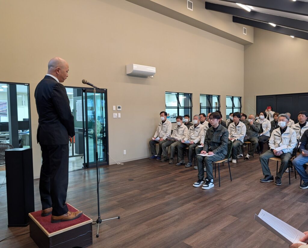2026.04.01 お知らせ 令和8年度入社式を執り行いました。 4月1日に令和8年度入社式を行い、 今年度は新たに1名のフレッシュな仲間を迎えました。 式では社長の新年度挨拶に続き、新入社員による挨拶が行われ緊張した様子も見られましたが、会場は温かい雰囲気に包まれました。 最後は、ドローンによる記念撮影!! 武江組にまた新たな風が吹き込みました。 当社の未来を支える大きな力となることを期待しています! 前の記事へ お知らせ一覧へ戻る
