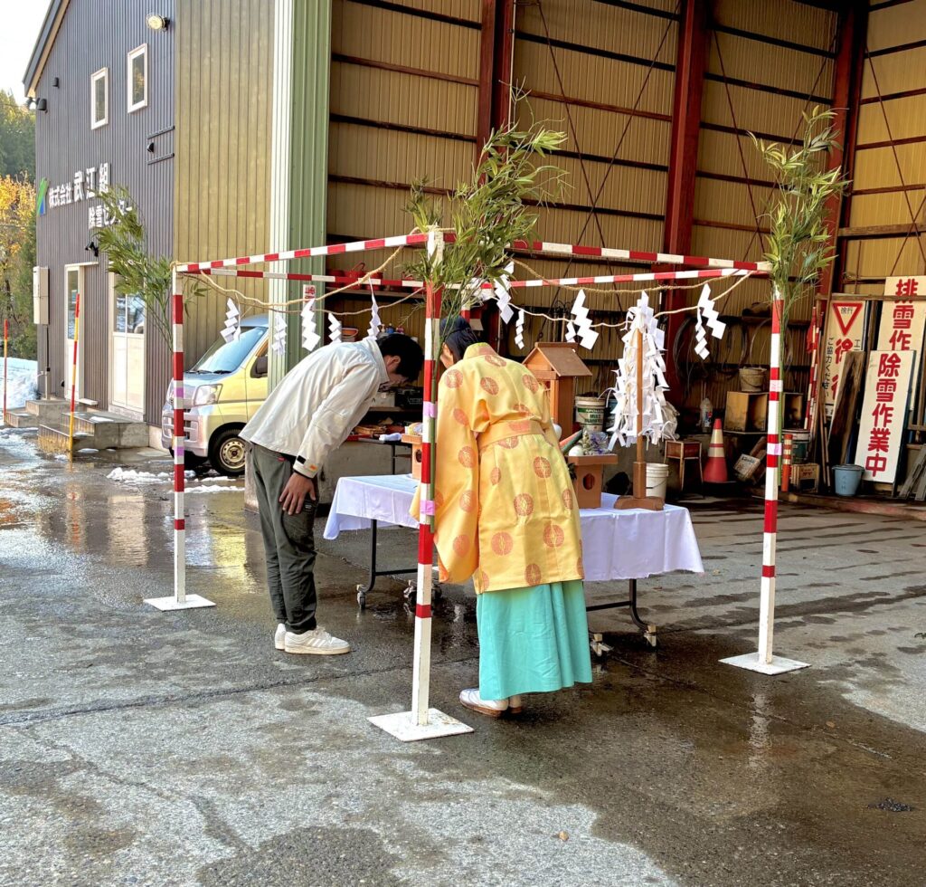 当社は今年も除雪作業の無事故無災害を祈願して、除雪安全祈願祭を執り行いました。前日は大荒れの天気でしたが、当日は晴天となり、無事に祈願祭を執り行うことができました。